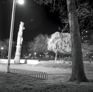 “...Lorraine Forte turns contemporary London and New York into the settings for a new version of the 1940’s Hollywood film noir. Forte’s photographs of fog-bound cities are abstractions of these hard-boiled movie thrillers: the people and the plot twists have disappeared, leaving in their wake a few velvety black shadows, a few spots of crisp white light.”